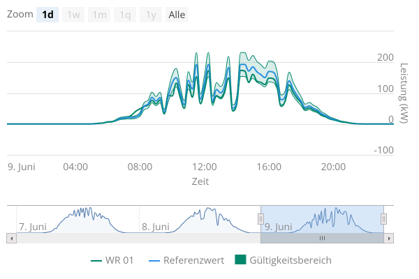Diese Tools bieten eine umfangreiche Überwachung der Performance aller Solargeräte, insbesondere das Erkennen und Melden von Minderperformance einzelner Geräte.