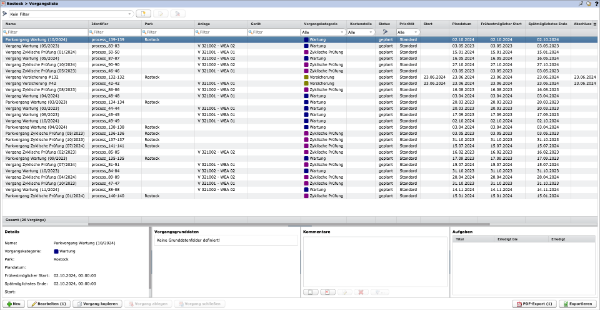 Detaillierte Filtereinstellungen, die auch als Filterprofile gespeichert werden können, tragen zur effizienten Vorgangsbearbeitung bei.