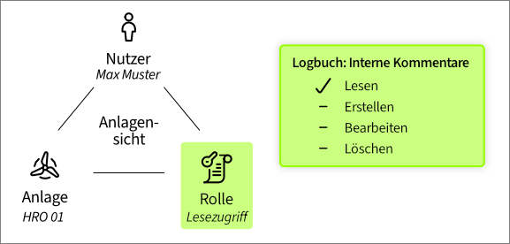 Anlagensichten sind die Zuordnungen von Accounts zu Rollen und bestehen immer in Verbindung mit Anlagen. Die in der Rechteverwaltung zugeordneten Rechte übertragen sich für die entsprechenden Anlagen auf die der Rolle zugehörigen Accounts.